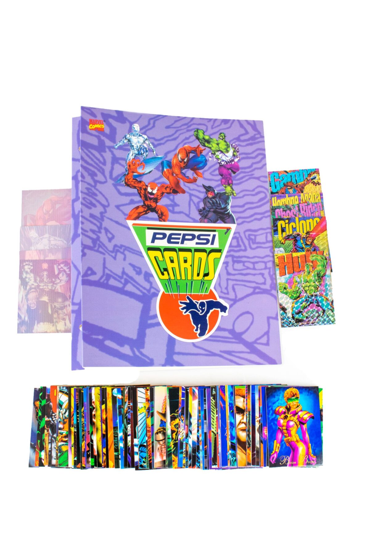 – 100 básicas (1 carta checklist + 99 cards de superhéroes)