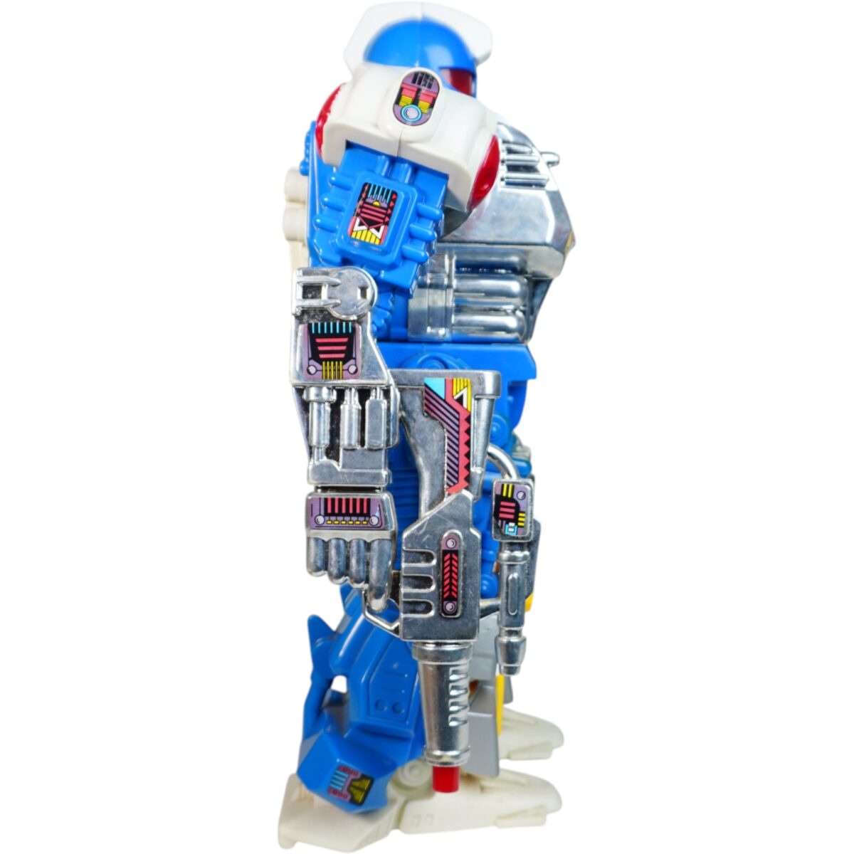 • Diseño futurista con acabados llamativos y estética típica de los juguetes de la época.