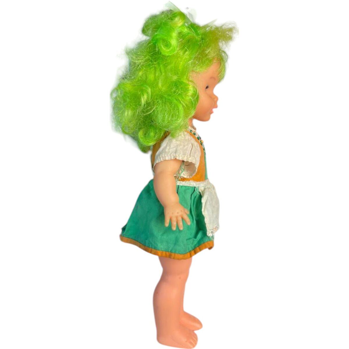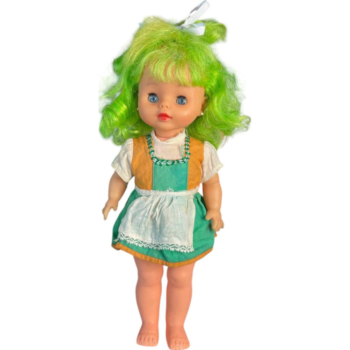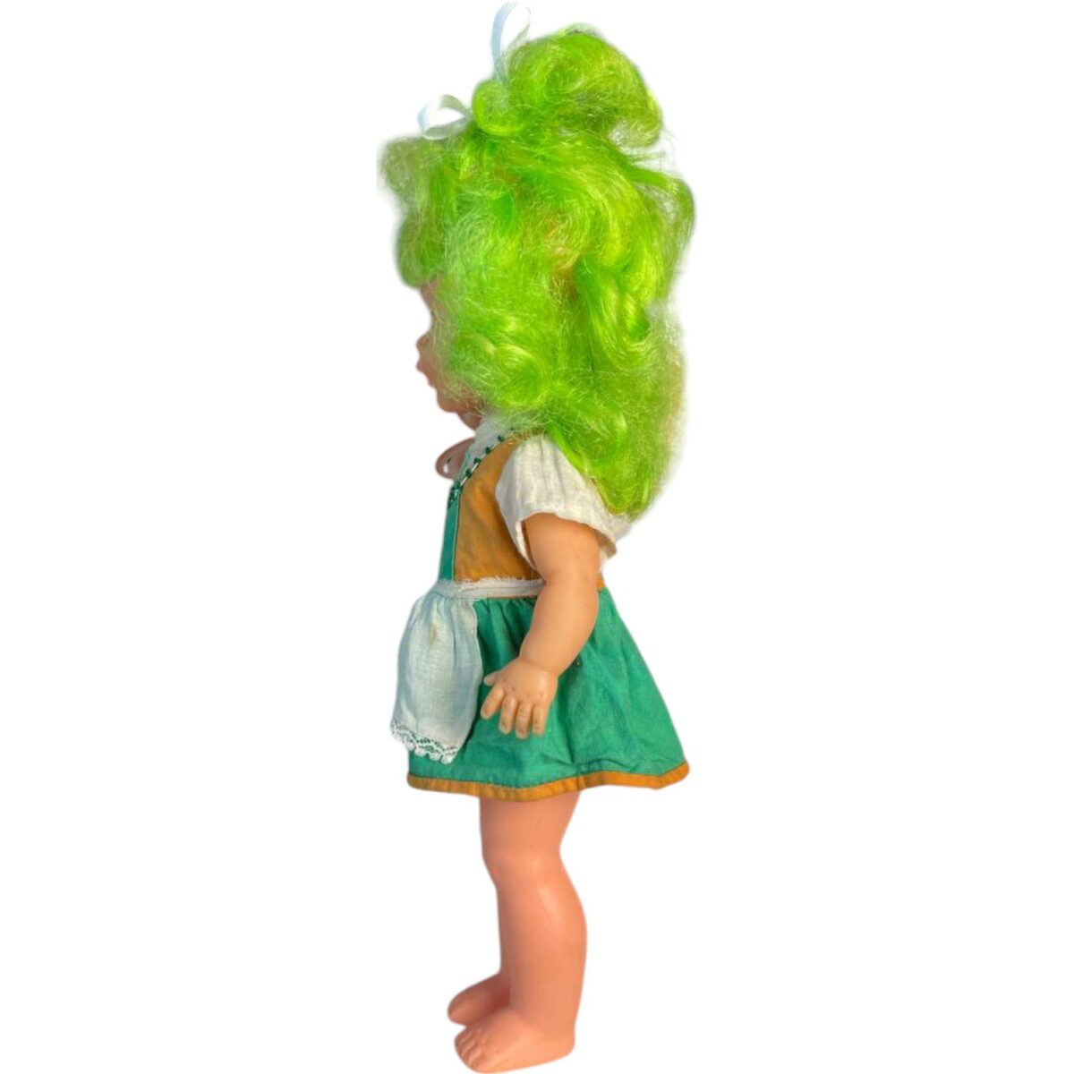 Una muñeca con toda la esencia de la infancia de los años 80. Su cabello Verde vibrante y su dulce expresión con pecas la convierten en una pieza única para coleccionistas y nostálgicos.