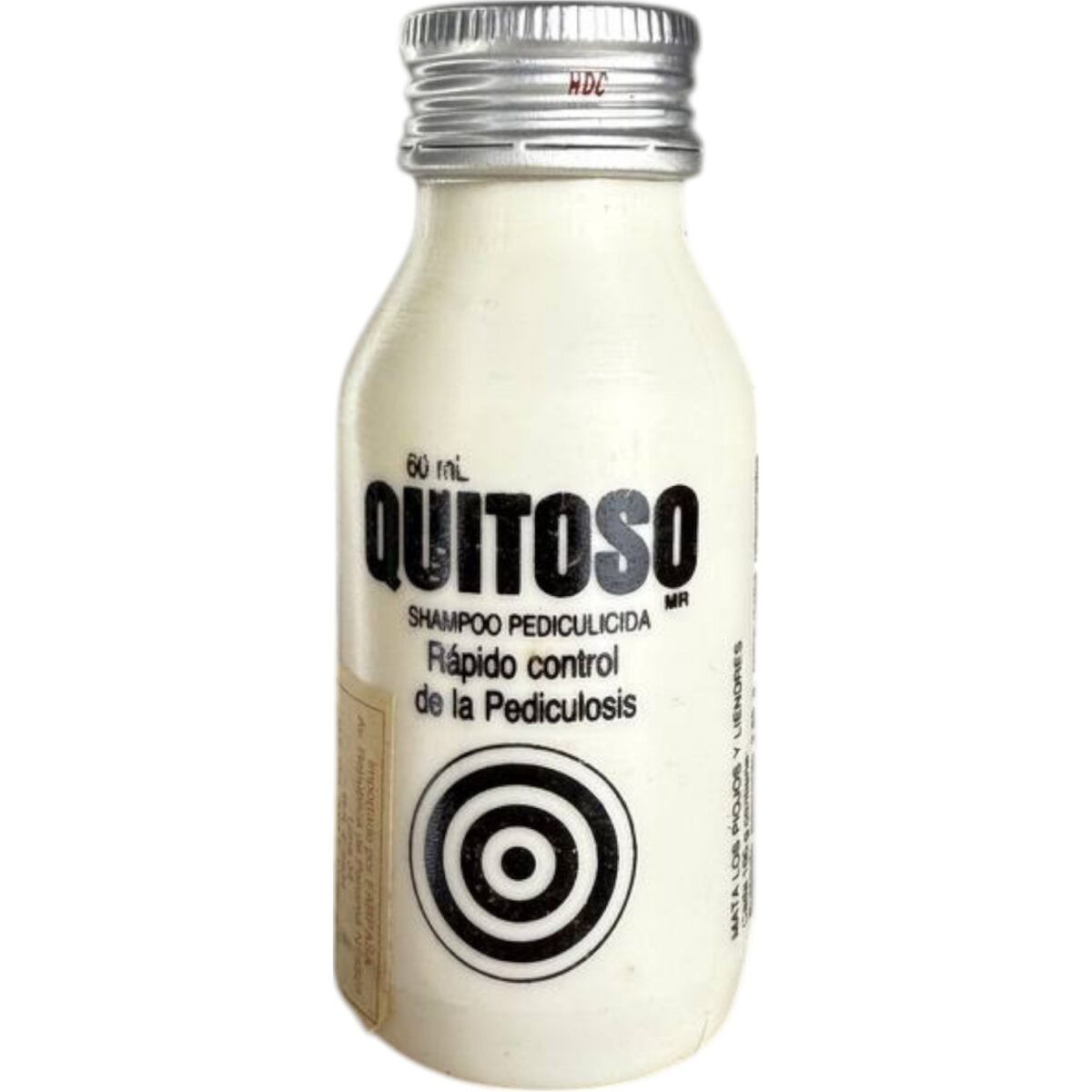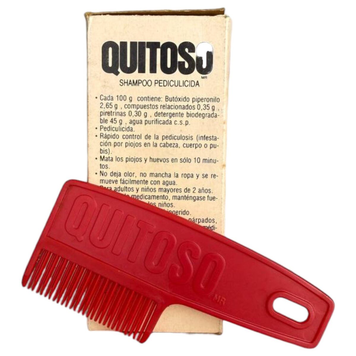 • Producto original de la marca Quitoso, reconocido shampoo pediculicida de uso común en los años 80 y 90.