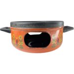 Fabricado en metal esmaltado color naranja con ilustraciones florales multicolor